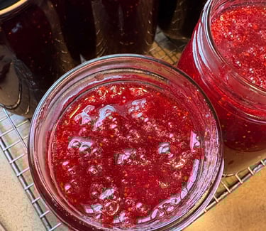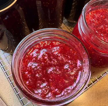 A colorful peek at Jules' homemade jams and jellies. Contact us with any questions.